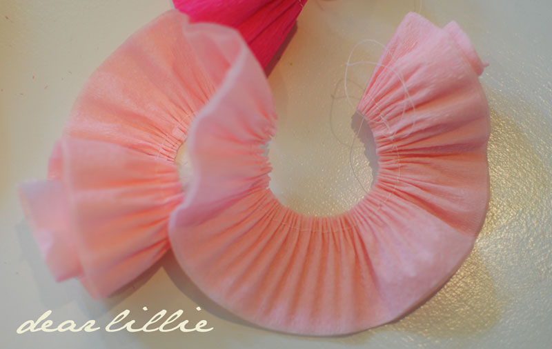 *****PLEASE NOTE: I used white thread for all of mine so that it would show up in the photos for this tutorial but I would recommend using the same color thread as your crepe paper!